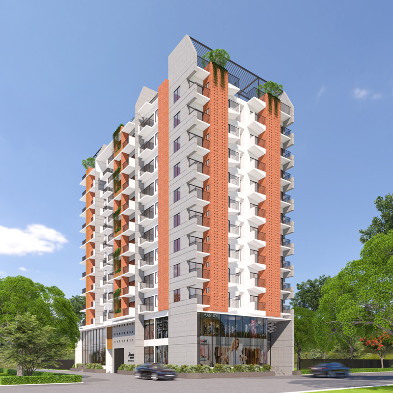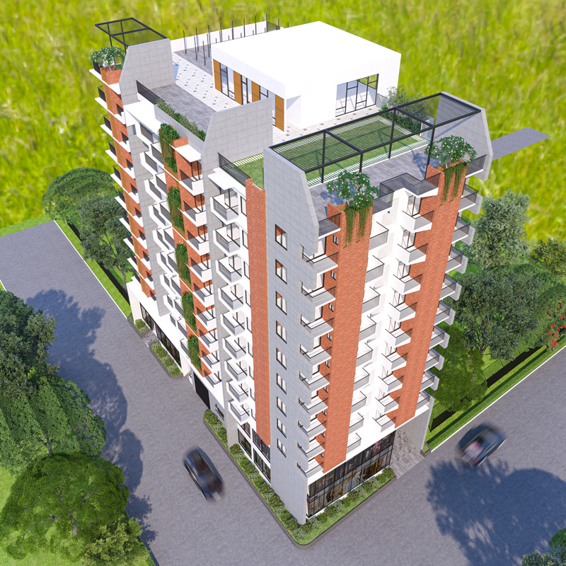 • Project composition: Car Parking in the basement, Shops are in the ground floor and first floor. Eight typical floors of Apartments. All together it is a Ten storied residential building with a basement.
